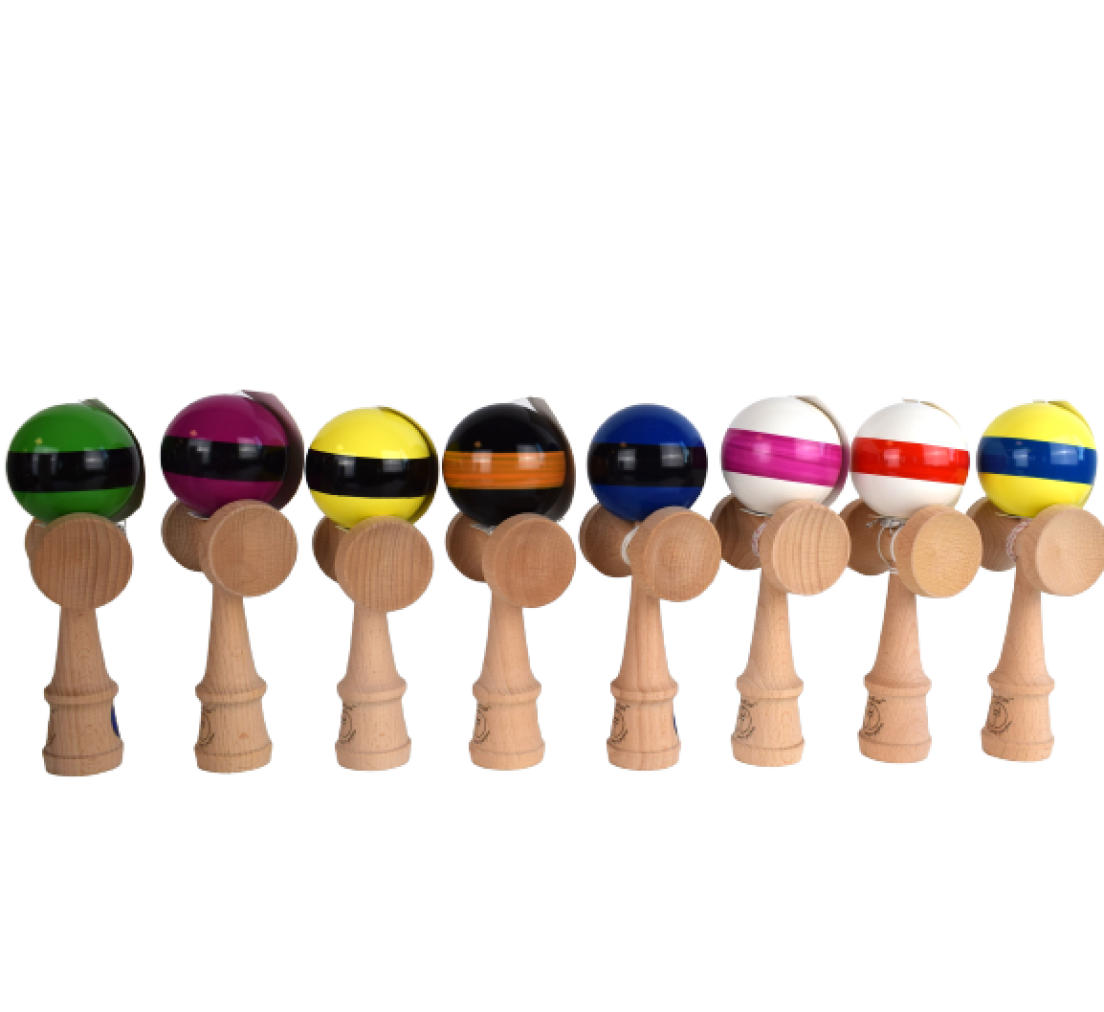Durch den Streifen am Ball ist es leichter in der Bewegung die Position des Lochs zu verfolgen. Dieses Kendama erfüllt die offiziellen Vorgaben für Wettkampfkendamas.