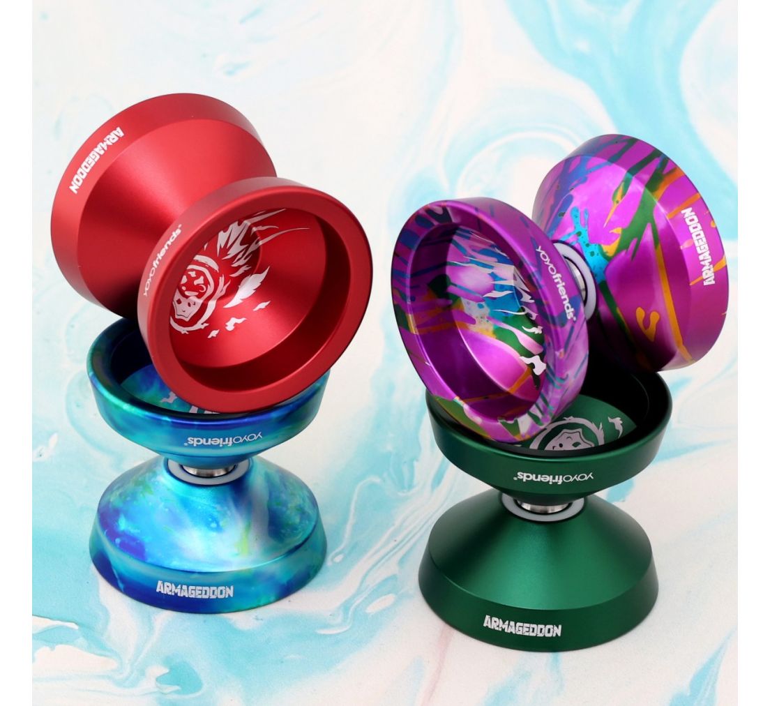 Das Armageddon ist das neuste Monometal Design aus dem Hause YoYoFriends. Inspiriert von Teammitglied Yahoo (Hy Dang) waren sie auf der Suche nach einem Entwurf, der noch breiter als das Ultracut sein sollte. YoYoFriends verschieben mit diesem Design die Grenzen ihres Repertoires und bringen nach einigen Prototypen und vielen Tests das Armageddon in ihr Line-Up. Der Name ist inspiriert von der K-Pop Band Aespa, deren Song „Armageddon“ die Philosophie von YoYoFriends gut zusammenfasst: „I'ma get 'em done“